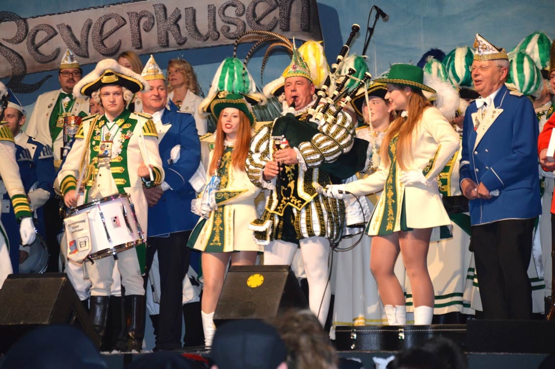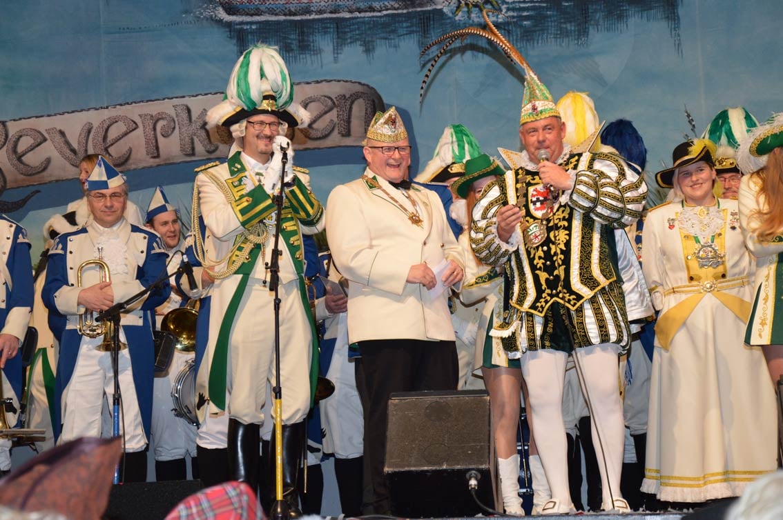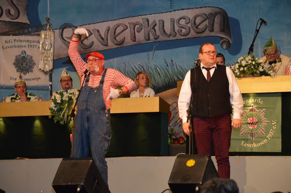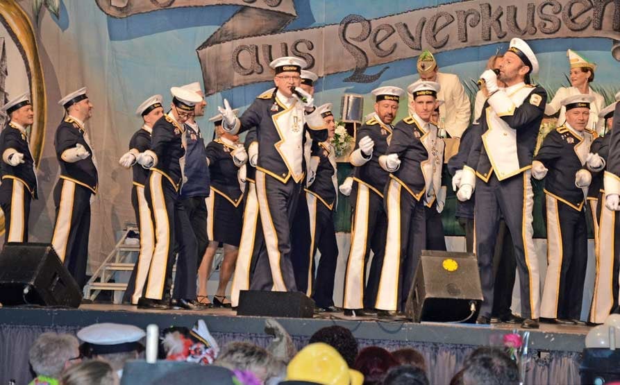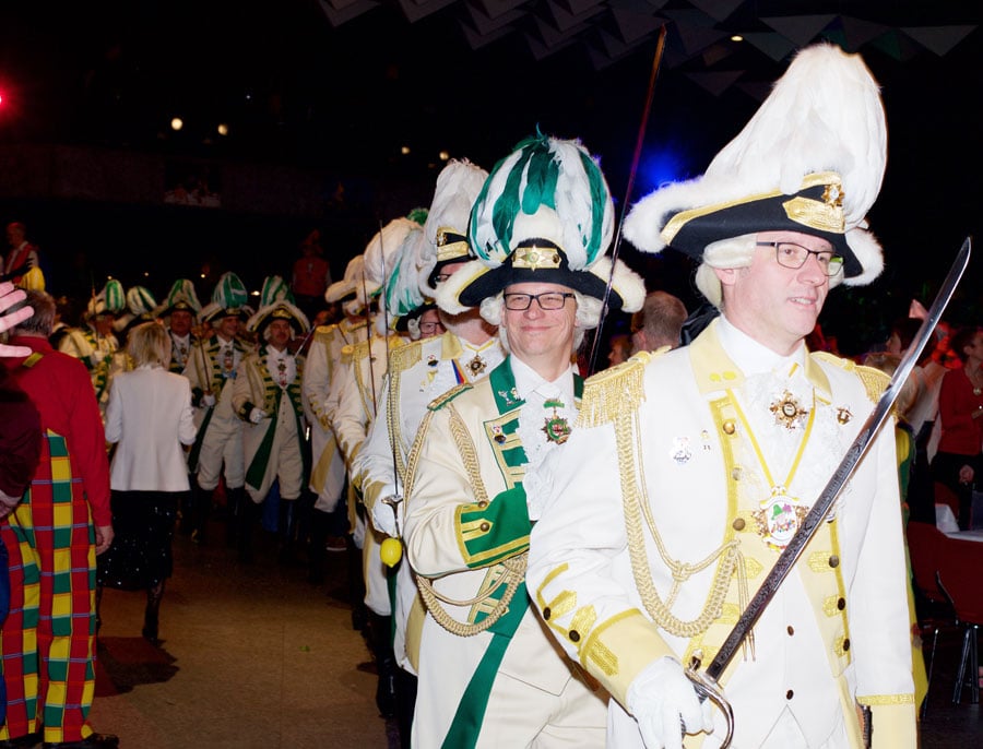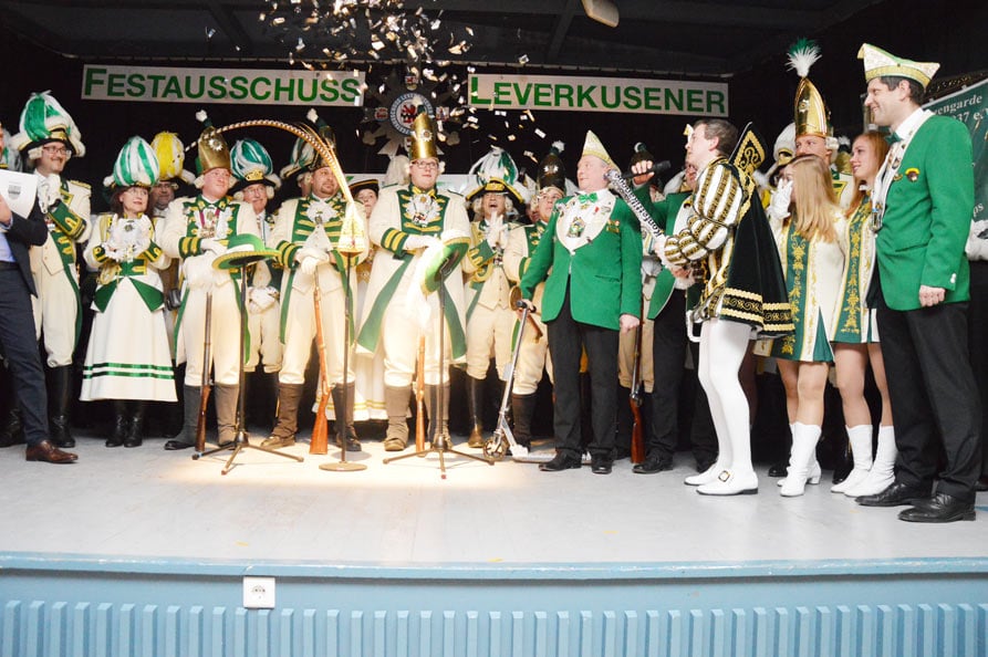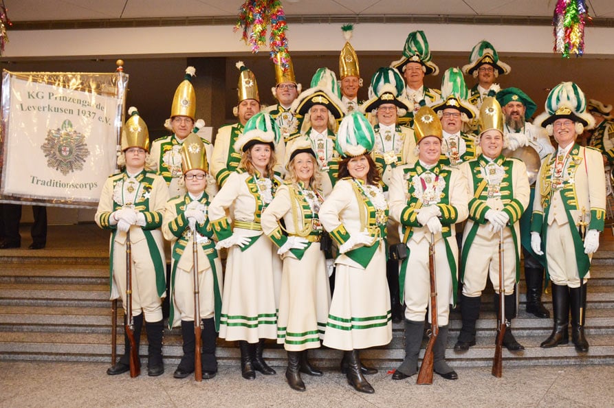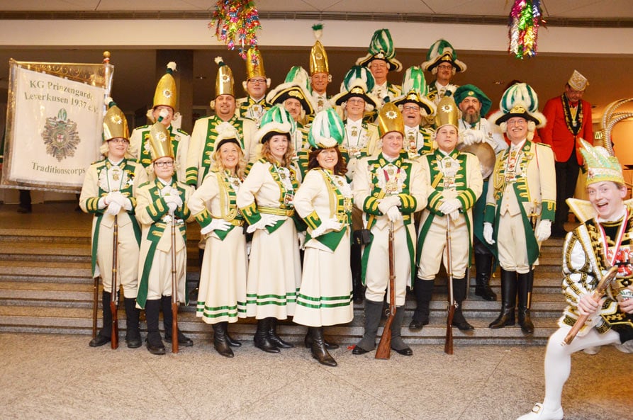Die Kostümsitzung bei der Prinzengarde Leverkusen findet nun schon seit vielen Jahren im Forum statt. In diesem Jahr ging für Präsident Peter Schmitz ein lang ersehnter Wunsch in Erfüllung. Literat Norbert Bauer hatte das Traditionskorps der Altstädter aus Köln engagiert. Rund 150 Mitstreiter füllten die große Bühne im Terrassensaal.