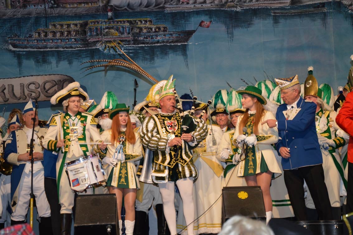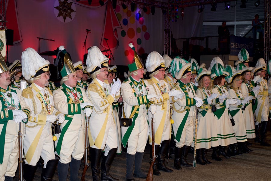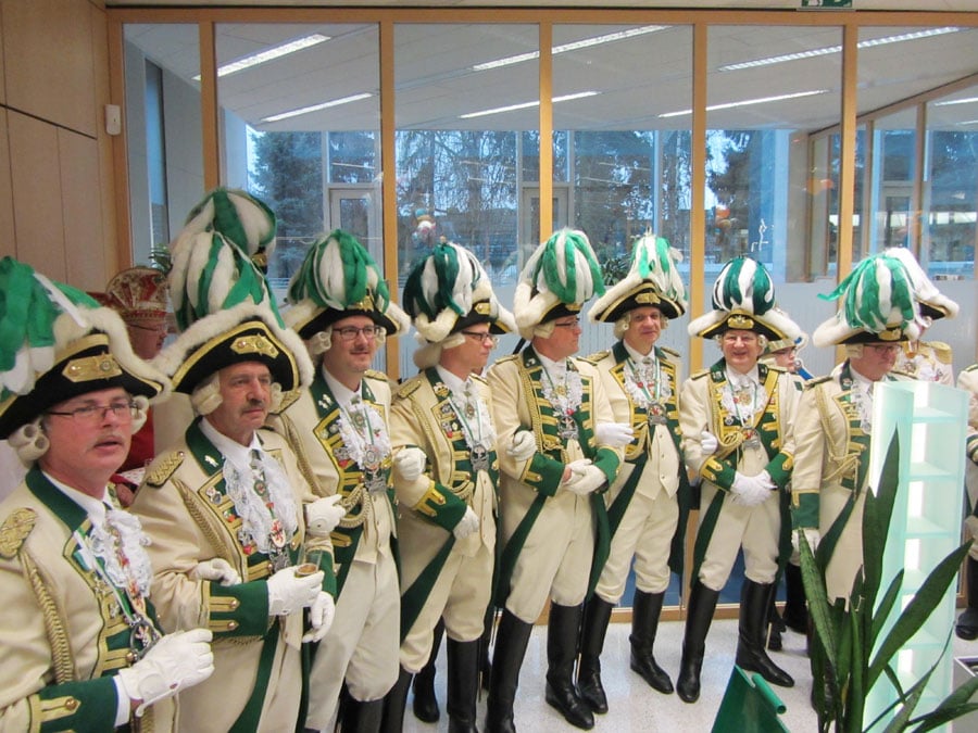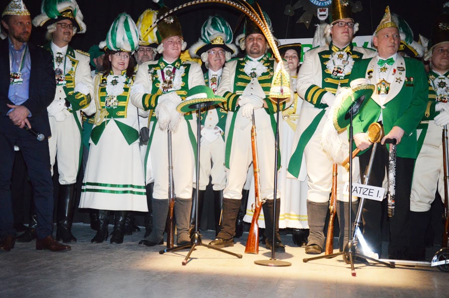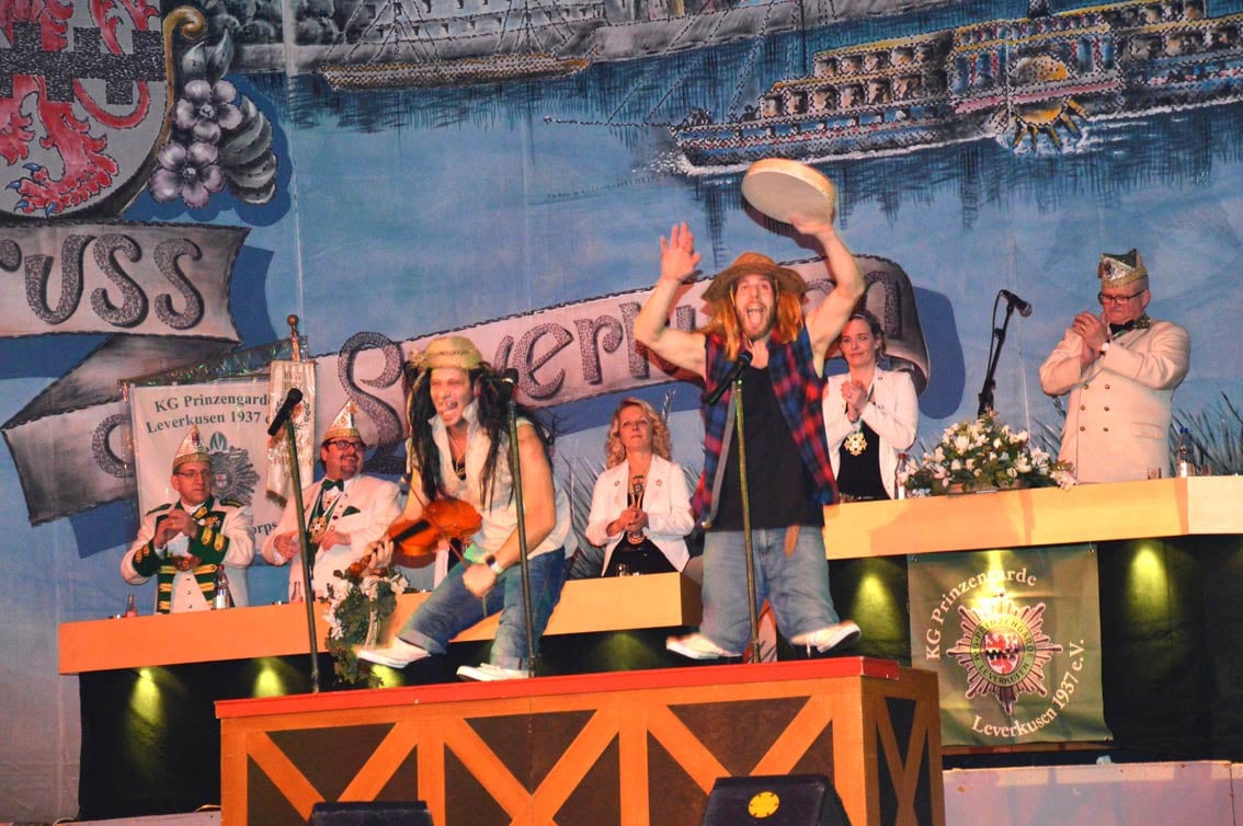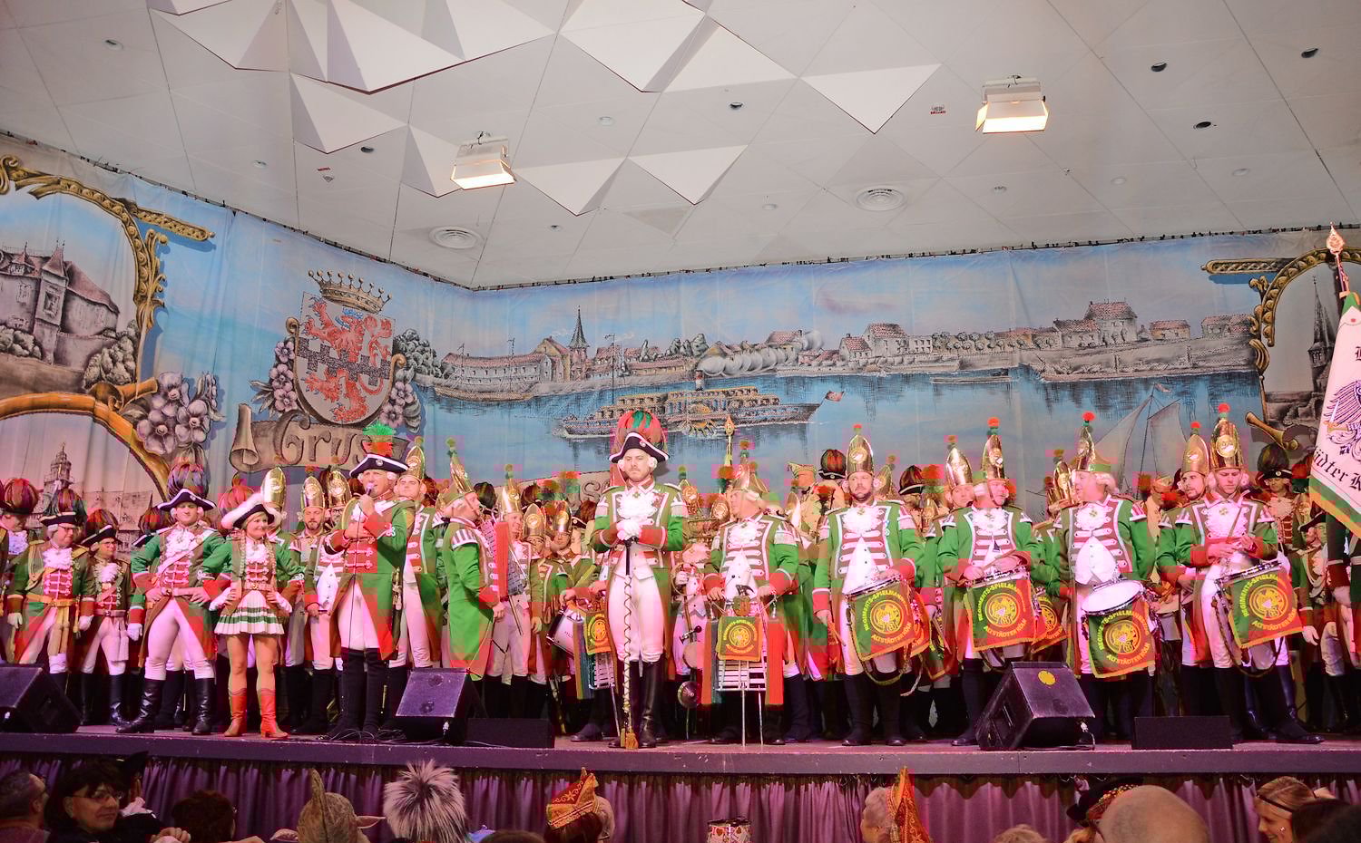 Die Kostümsitzung bei der Prinzengarde Leverkusen findet nun schon seit vielen Jahren im Forum statt. In diesem Jahr ging für Präsident Peter Schmitz ein lang ersehnter Wunsch in Erfüllung. Literat Norbert Bauer hatte das Traditionskorps der Altstädter aus Köln engagiert. Rund 150 Mitstreiter füllten die große Bühne im Terrassensaal.