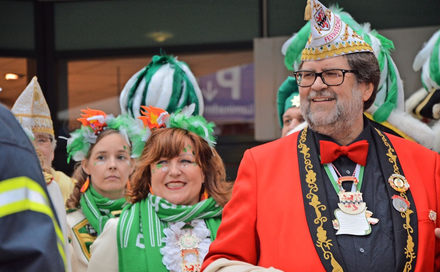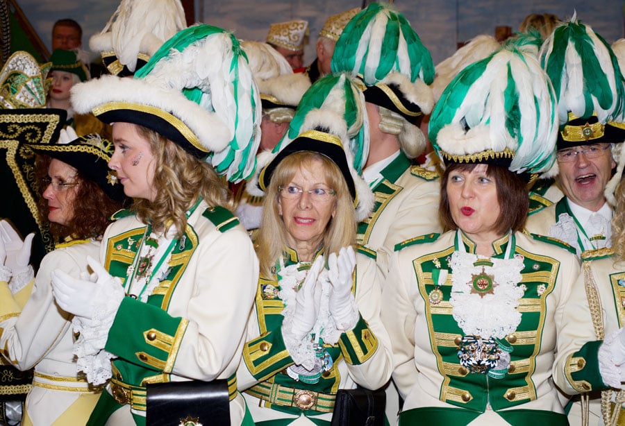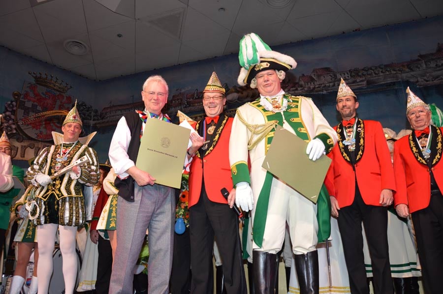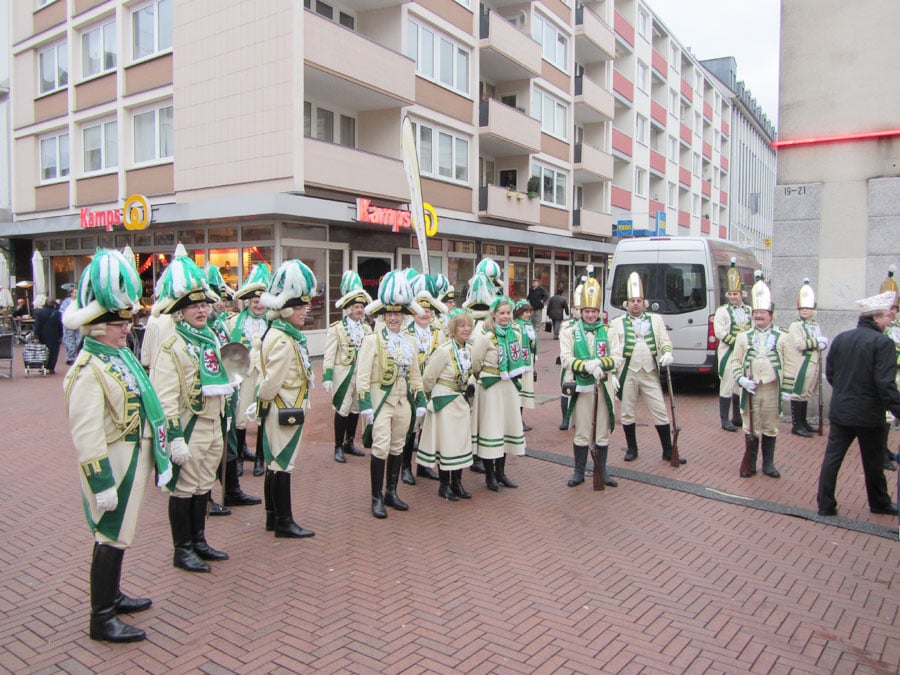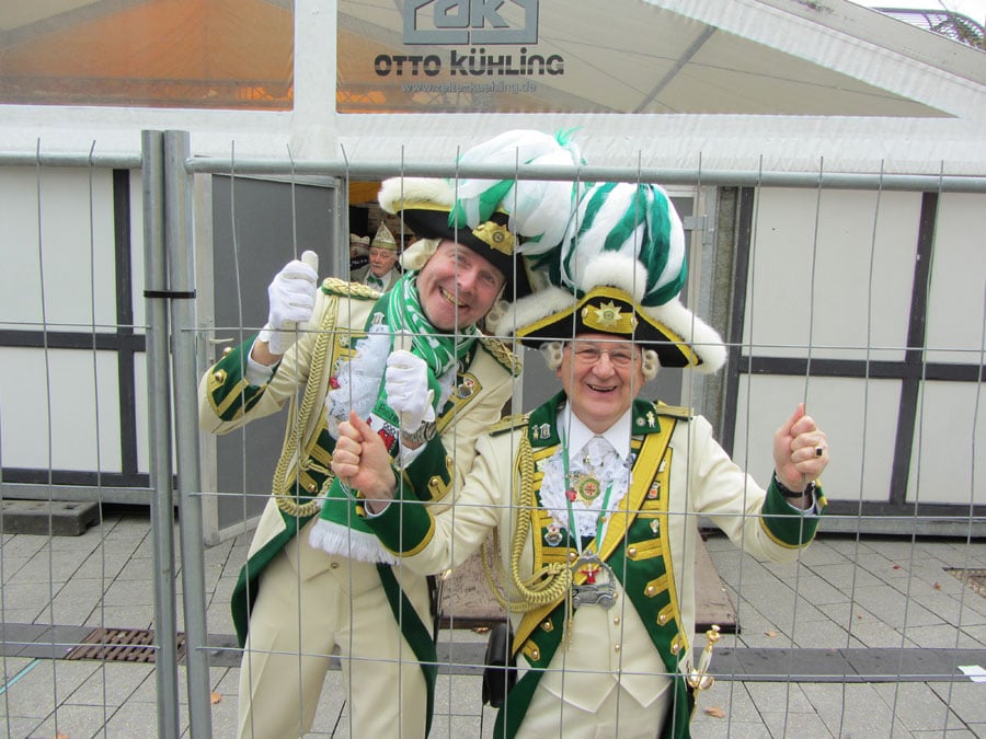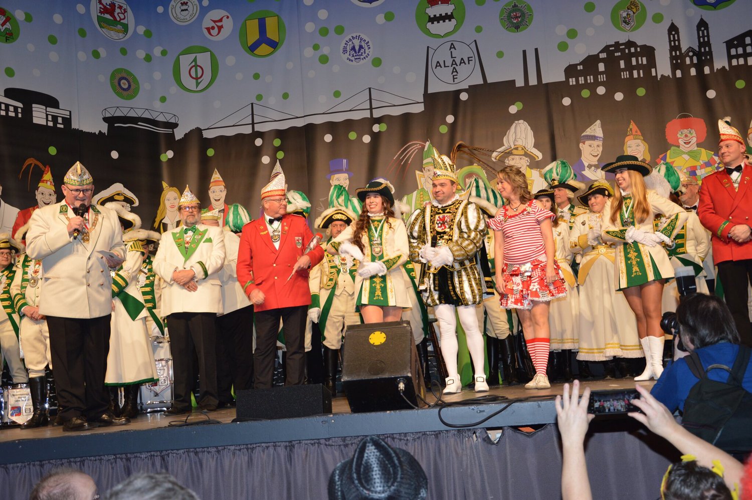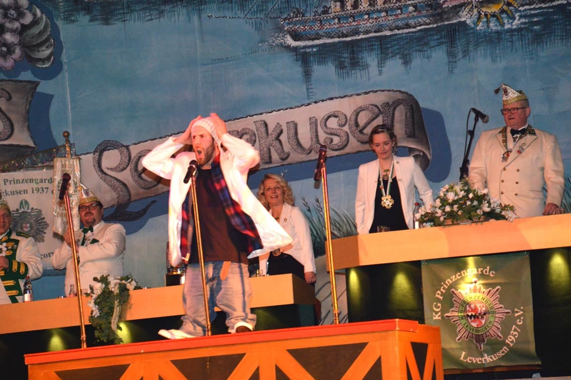 Die Kostümsitzung bei der Prinzengarde Leverkusen findet nun schon seit vielen Jahren im Forum statt. In diesem Jahr ging für Präsident Peter Schmitz ein lang ersehnter Wunsch in Erfüllung. Literat Norbert Bauer hatte das Traditionskorps der Altstädter aus Köln engagiert. Rund 150 Mitstreiter füllten die große Bühne im Terrassensaal.