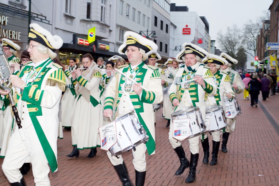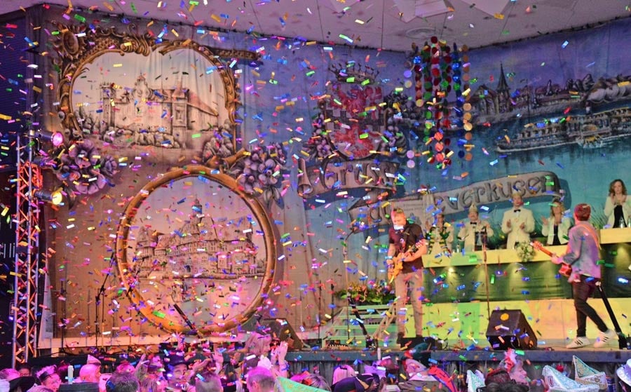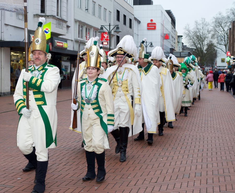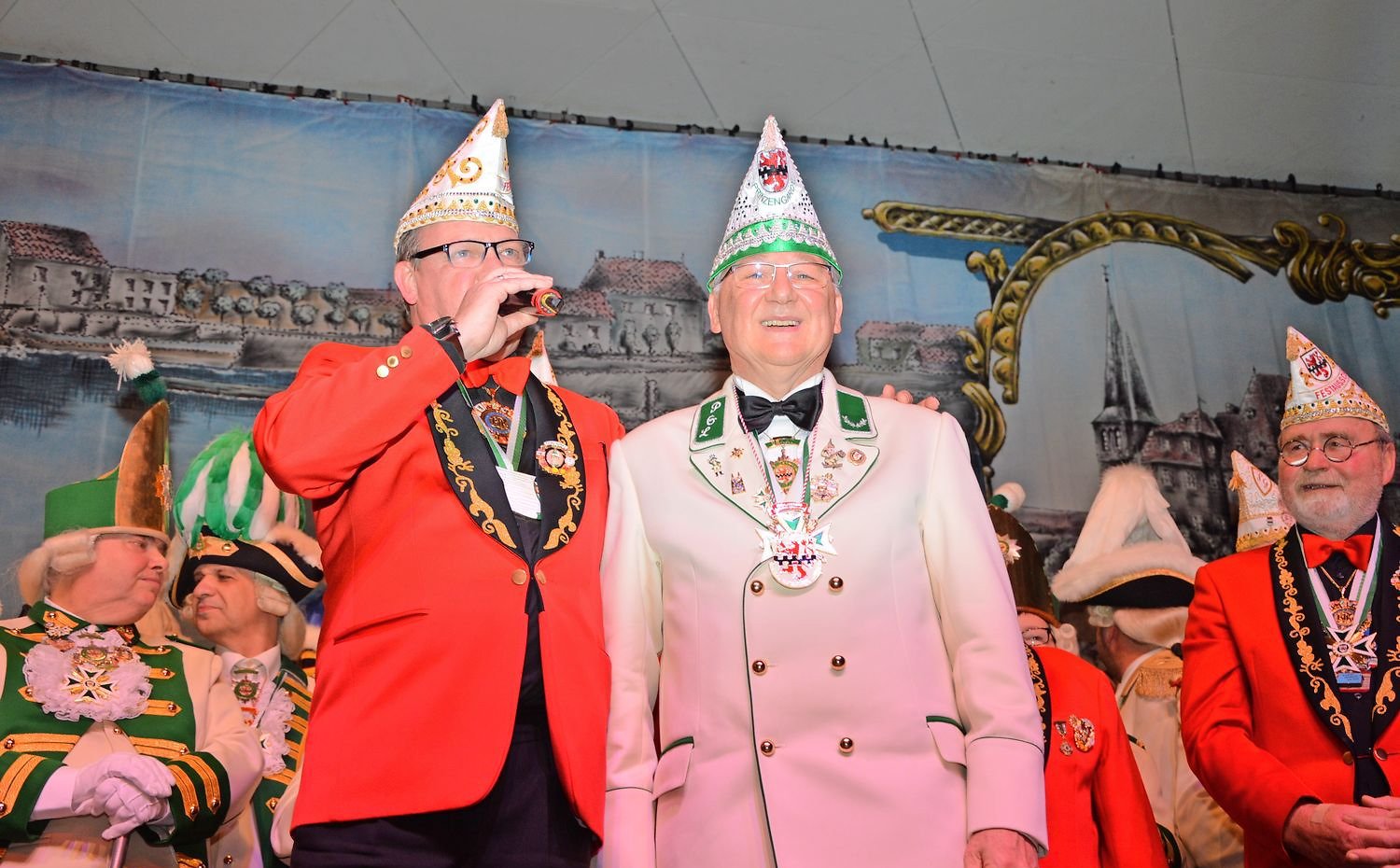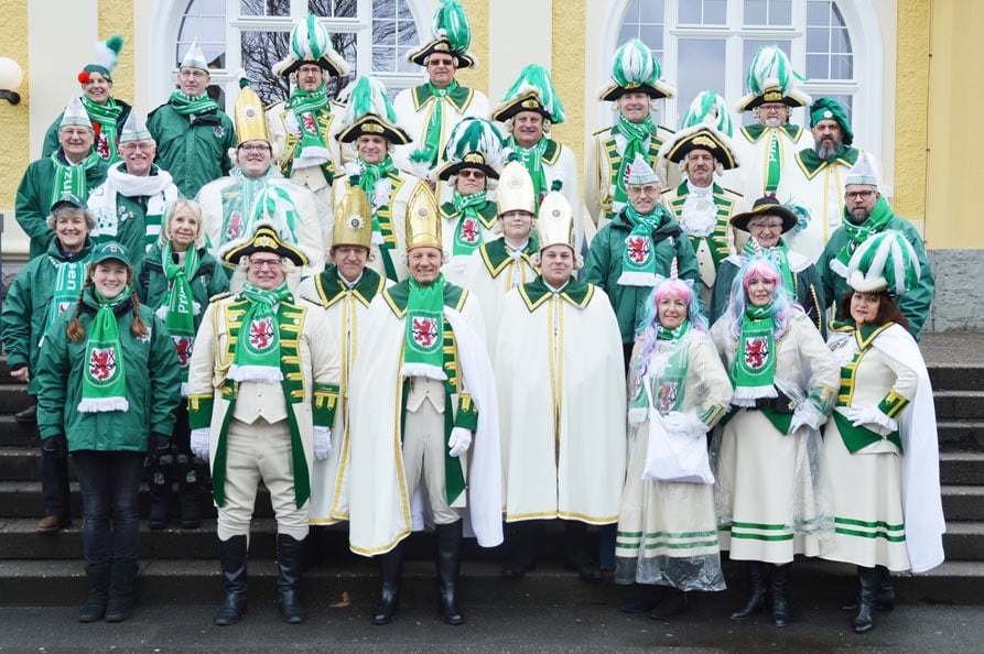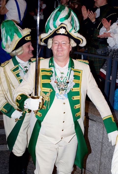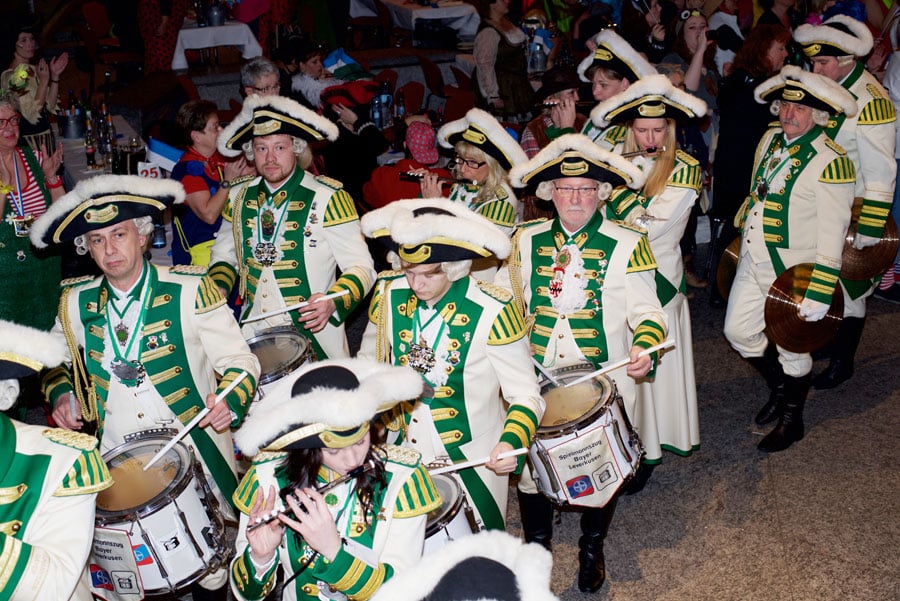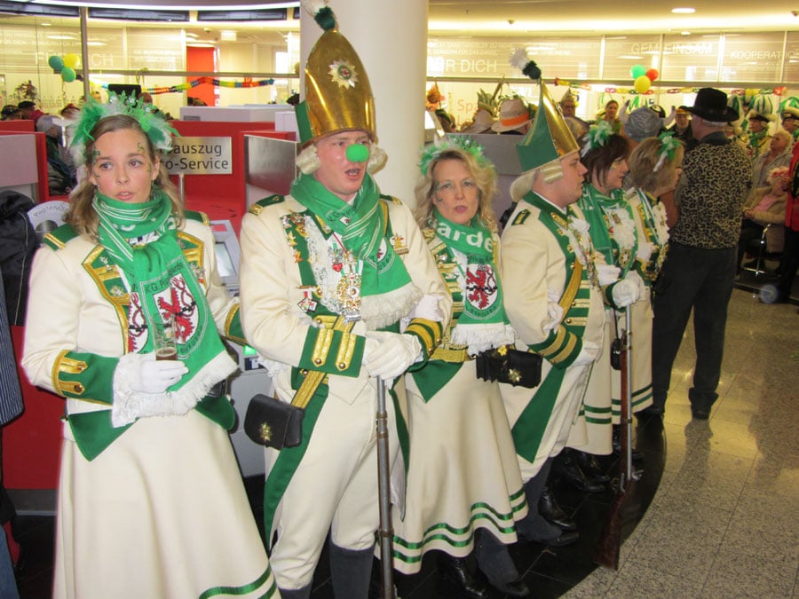 Die Kostümsitzung bei der Prinzengarde Leverkusen findet nun schon seit vielen Jahren im Forum statt. In diesem Jahr ging für Präsident Peter Schmitz ein lang ersehnter Wunsch in Erfüllung. Literat Norbert Bauer hatte das Traditionskorps der Altstädter aus Köln engagiert. Rund 150 Mitstreiter füllten die große Bühne im Terrassensaal.