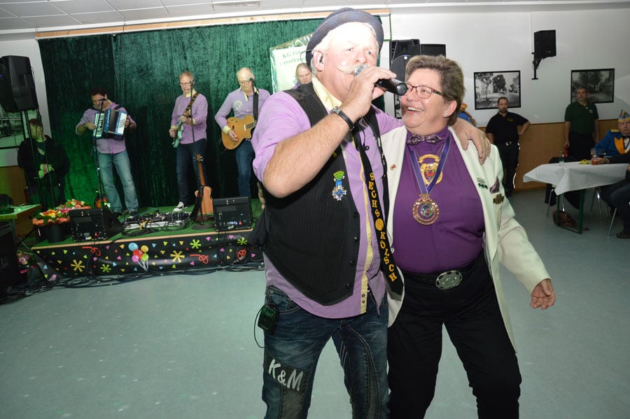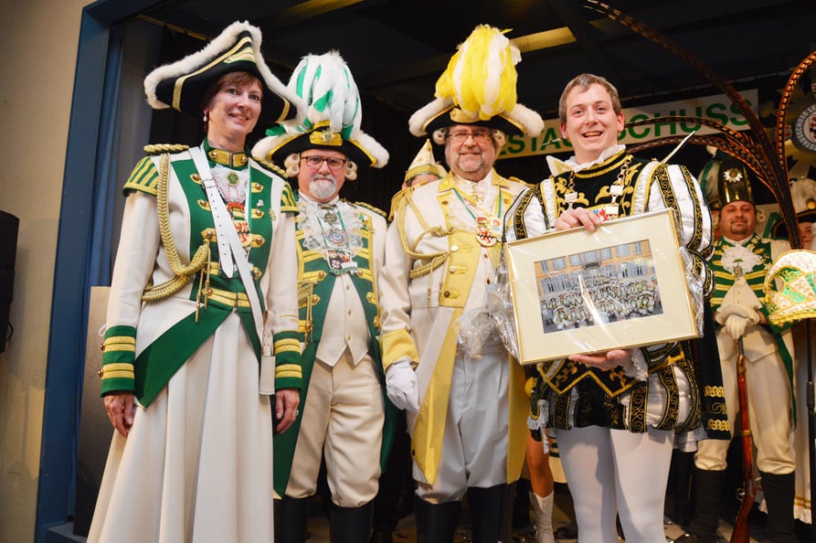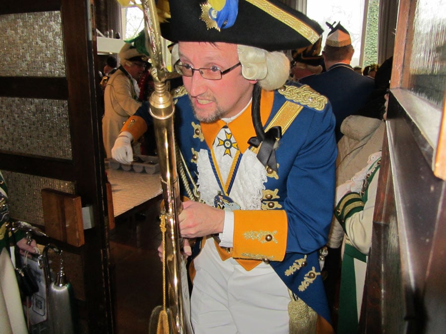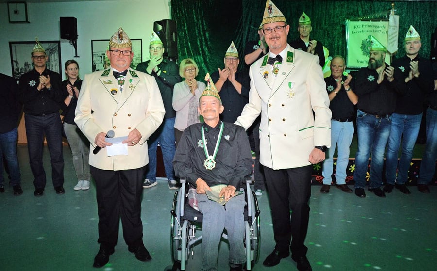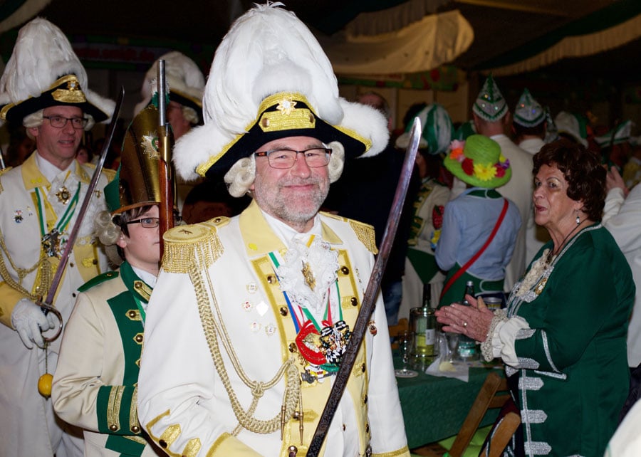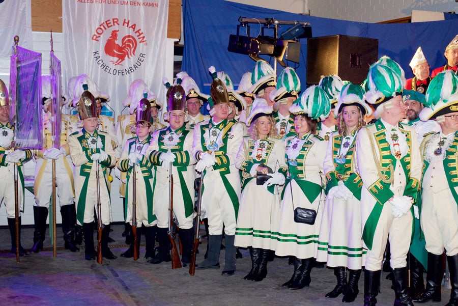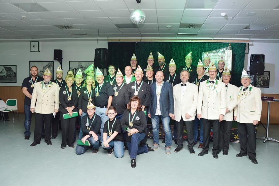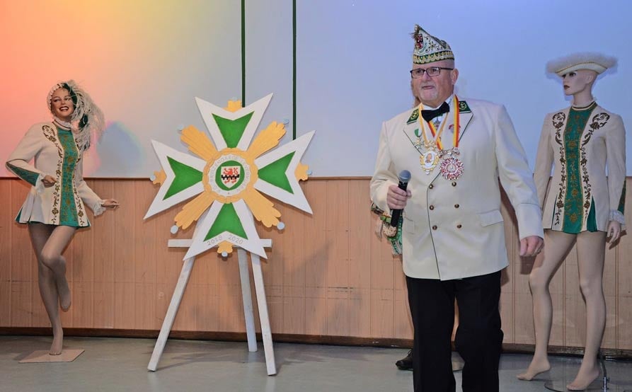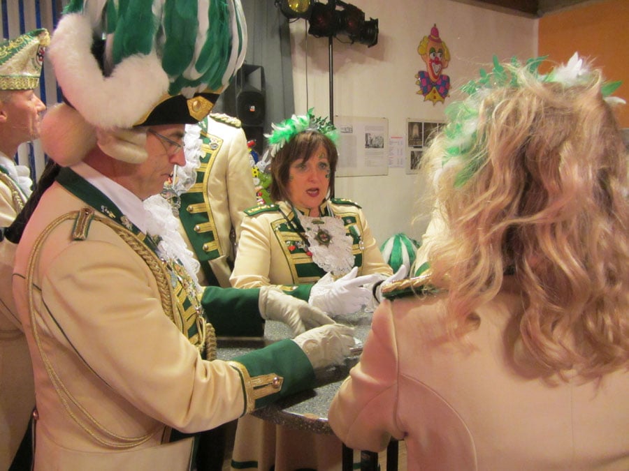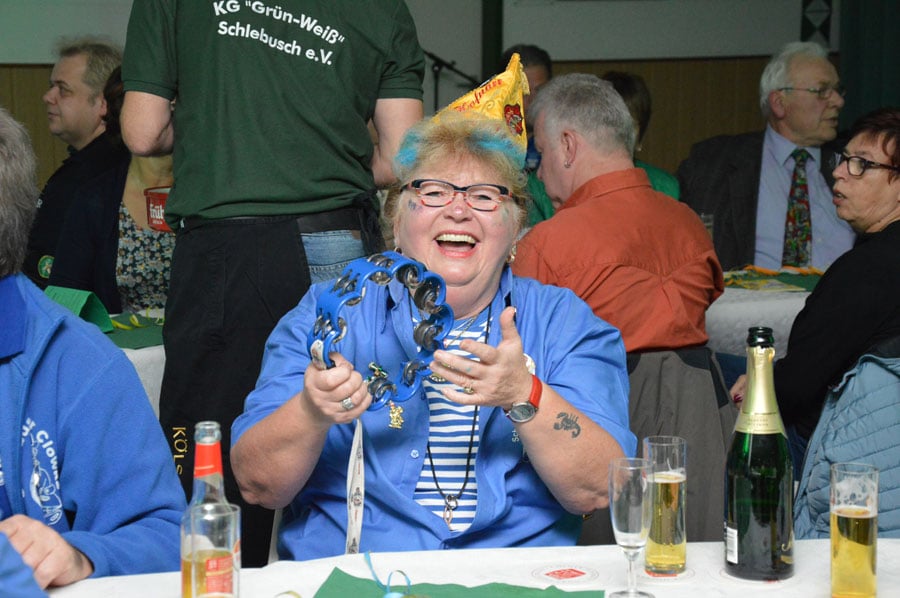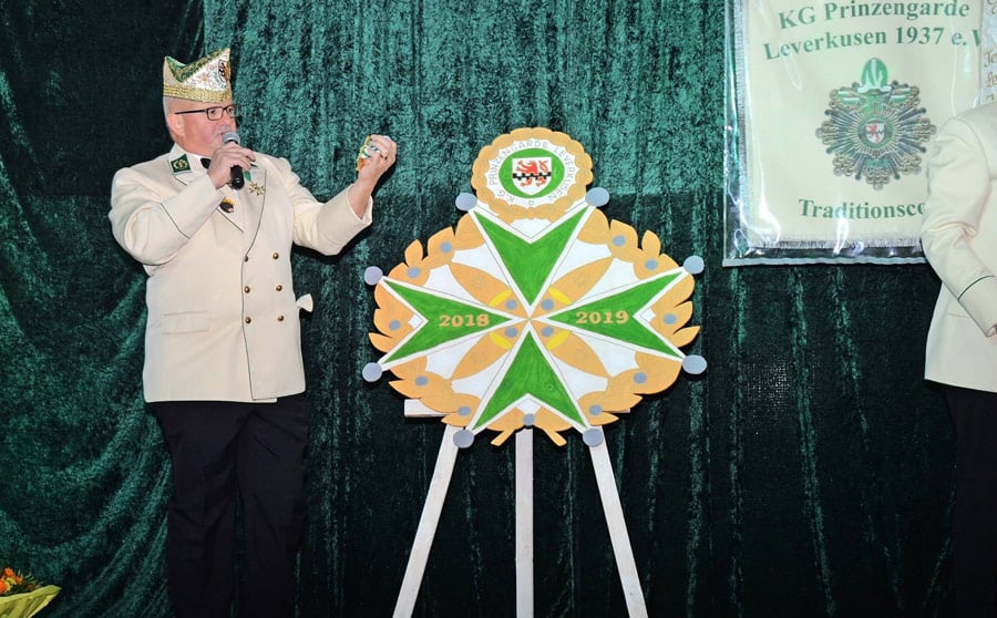 Im Feierraum von Grün-Weiß-Schlebusch lässt sich hervorragend in die Session starten. Buntes Programm, Beförderung der Wachemitglieder, Fahneneid neuer Mitglieder und der neue Prinz sind die Highlights des Abends. Außerdem wird der aktuelle Sessionsorden präsentiert, der von Kais Decrouppe übergroß aus Sperrholz zugeschnitten und bemalt wird. Die handgefertigten Unikate schmücken dann später die Galerie im Forum auf den Sitzungen der Prinzengarde.