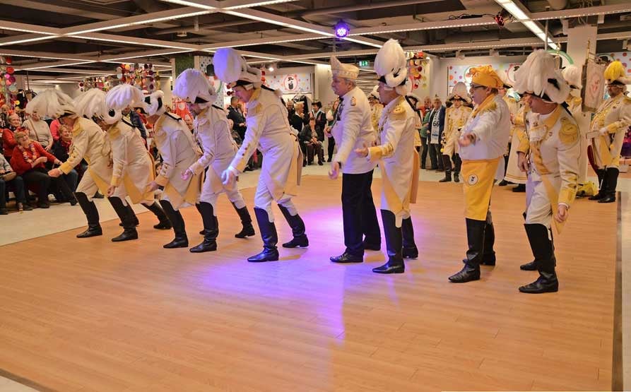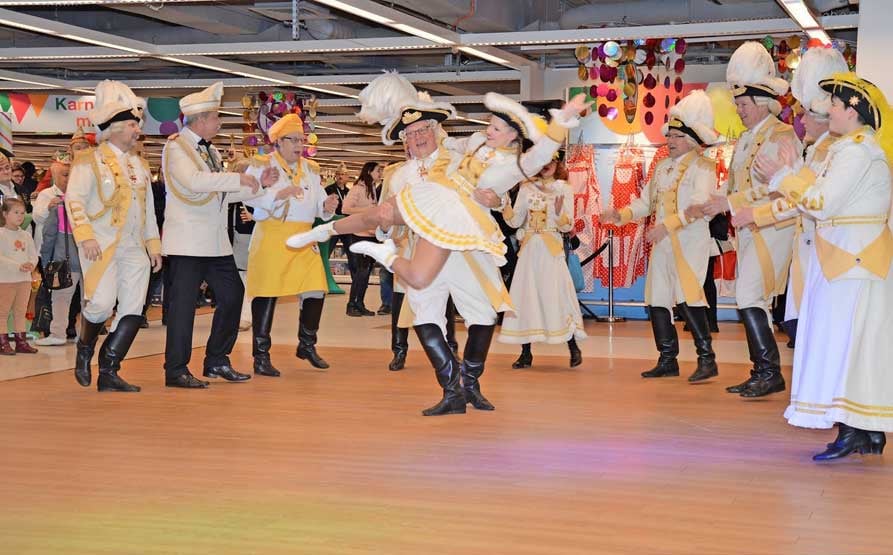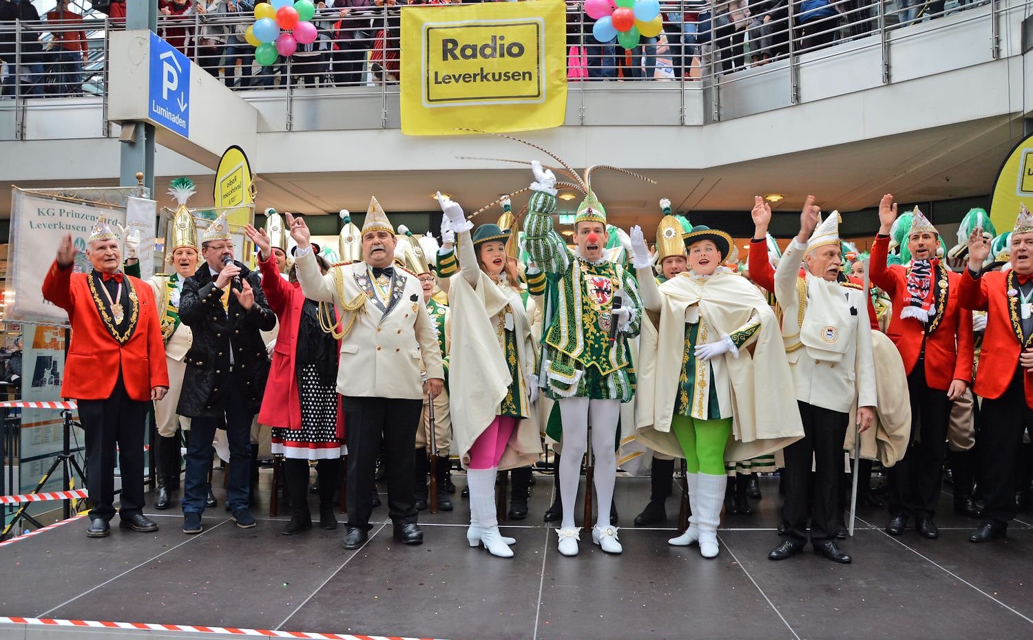Zahlreiche Tanzgruppen treten auf und zeigen ihr Können. Karneval braucht finanzielle Unterstützung und so gibt es bereits seit einigen Jahren eine Benefiz-Veranstaltung in der Galeria Kaufhof. Rote Funken und die Prinzengarde Leverkusen organisieren das Programm, die Moderation und den Getränkeverkauf und sorgen so für von der Galeria Kaufhof gespendete „Taler“, die für den Wiesdorfer und Opladener Karnevalszug bestimmt sind.