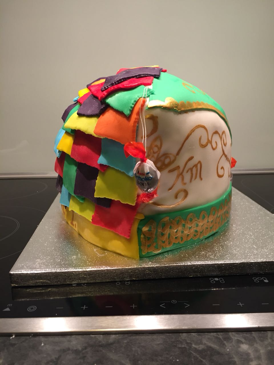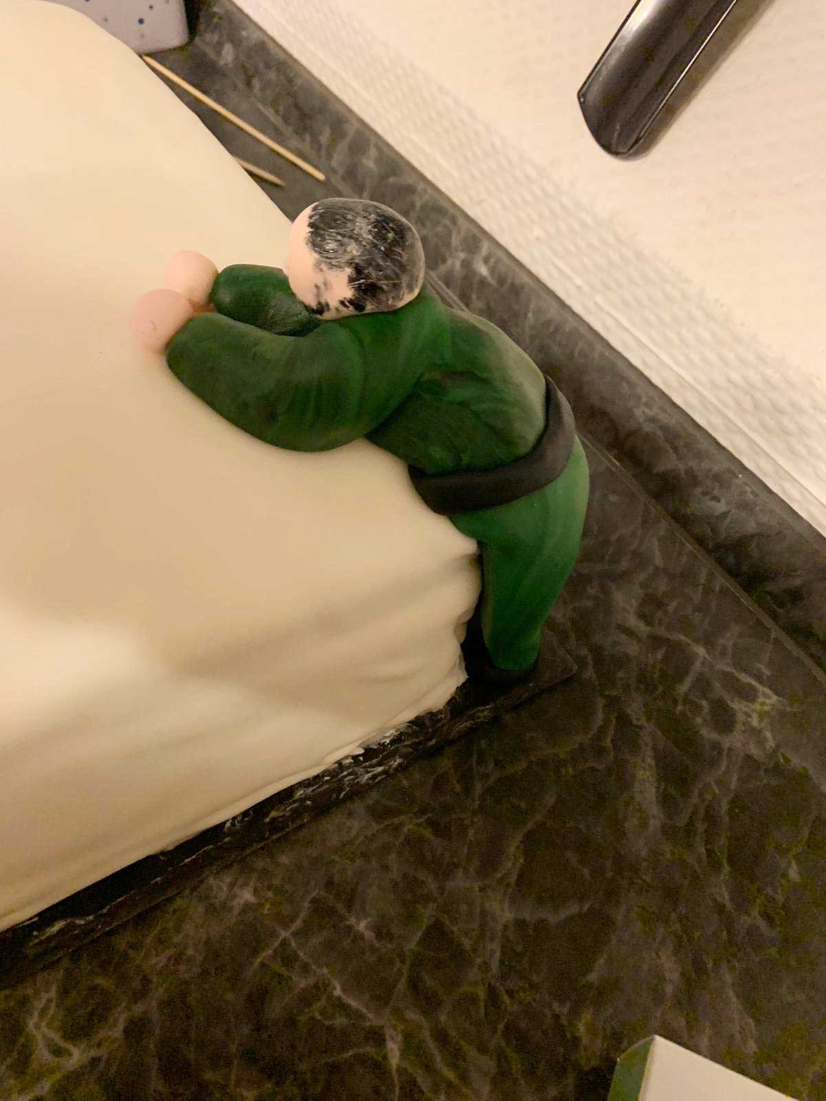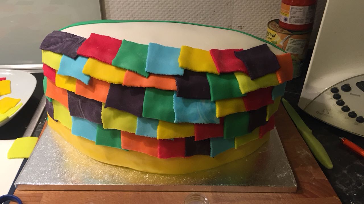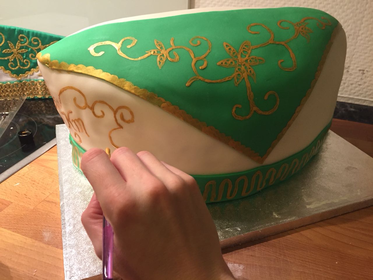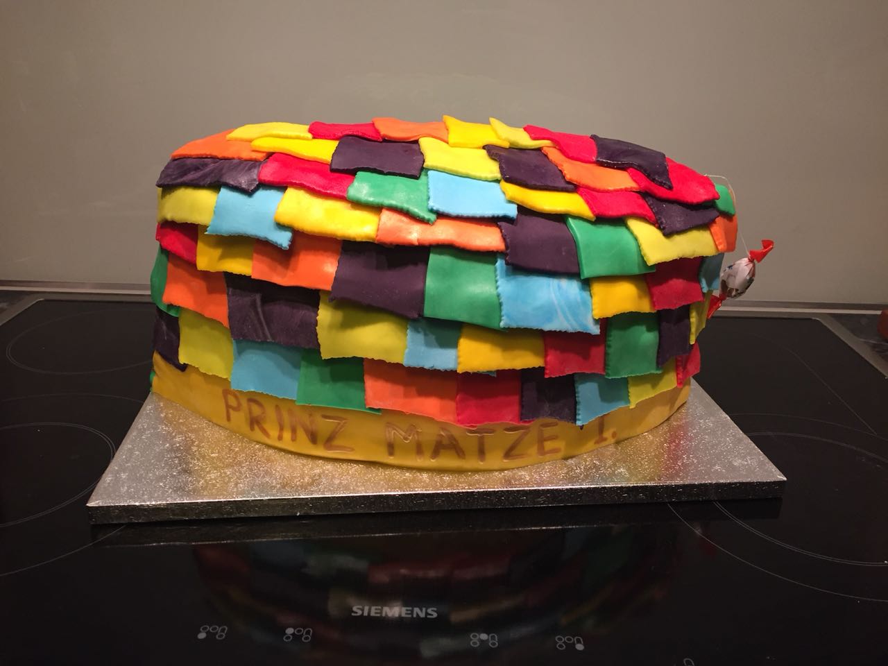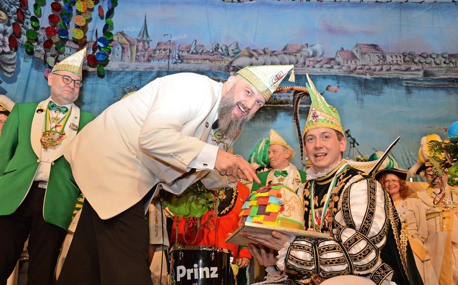 Als Prinzenkuchen hatte sich Gardekoch Sven Hartmann mit Gattin Kerstin wieder einmal etwas ganz Besonderes ausgedacht. Auf der Sitzung der Prinzengarde gibt es für den Prinzen immer einen selbst gestalteten Kuchen, der dieses Mal die Narrenkappe der Karnevalsgesellschaft des Prinzen darstellte. Im Prinzip sogar zwei Kappen in einer, denn die eine Seite hatte das Design der Karnevalsfreunde Manfort und die andere die der Lappenclowns der Karnevalsfreunde.