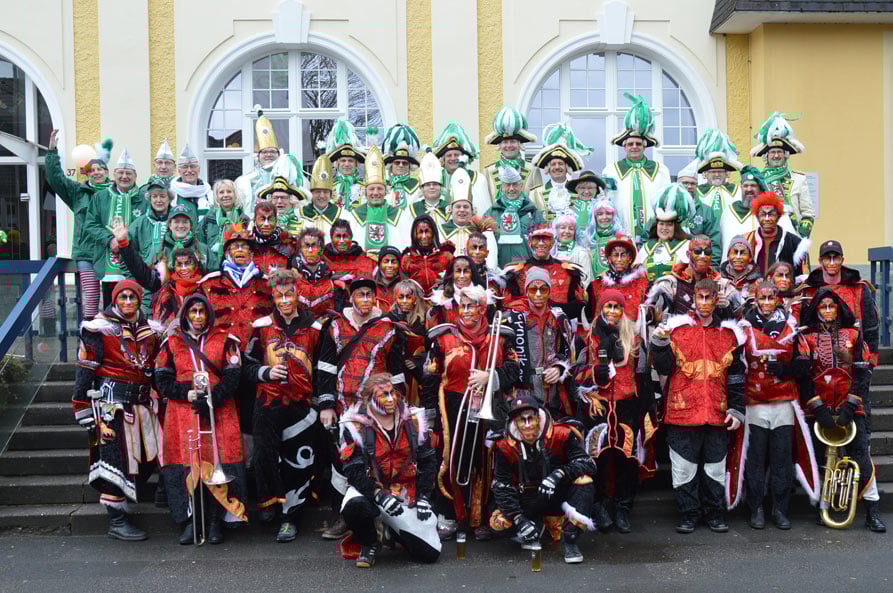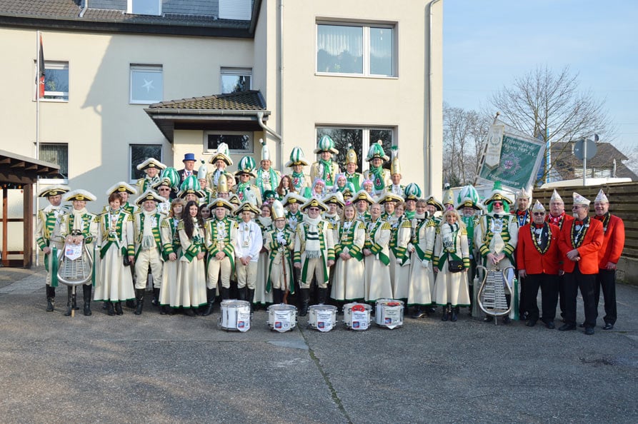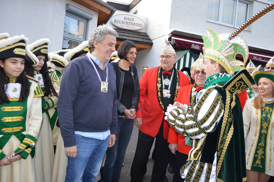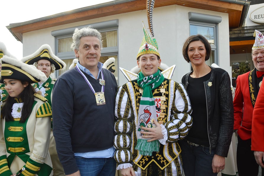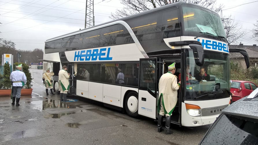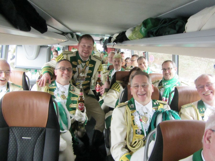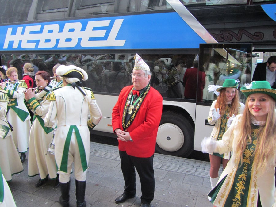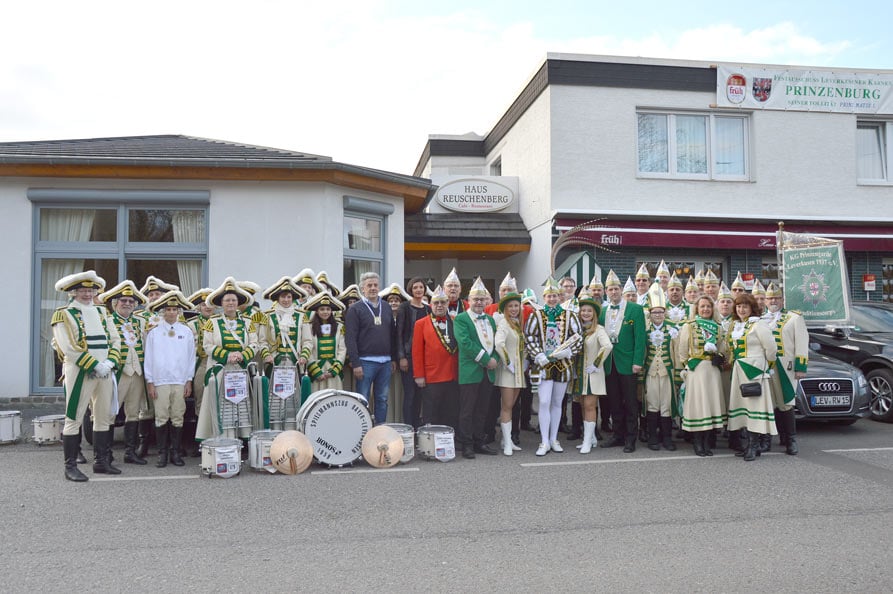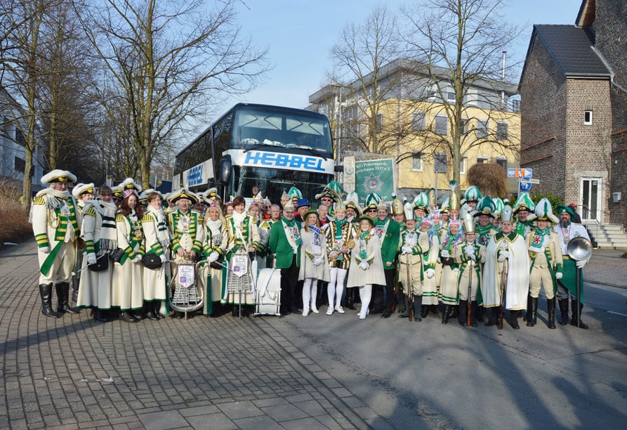 Für die Session der Treffpunkt vor den großen Auftritten. Wenn sich die komplette Prinzenbegleitung zum Auftrittsabend trifft, wird Platz für PKWs, durstige und manchmal auch hungrige Menschen benötigt. Seit einigen Jahren trifft man sich im Hotel Restaurant Reuschenberg, vor dem auch der große Hebbel-Bus ausreichend Platz hat.