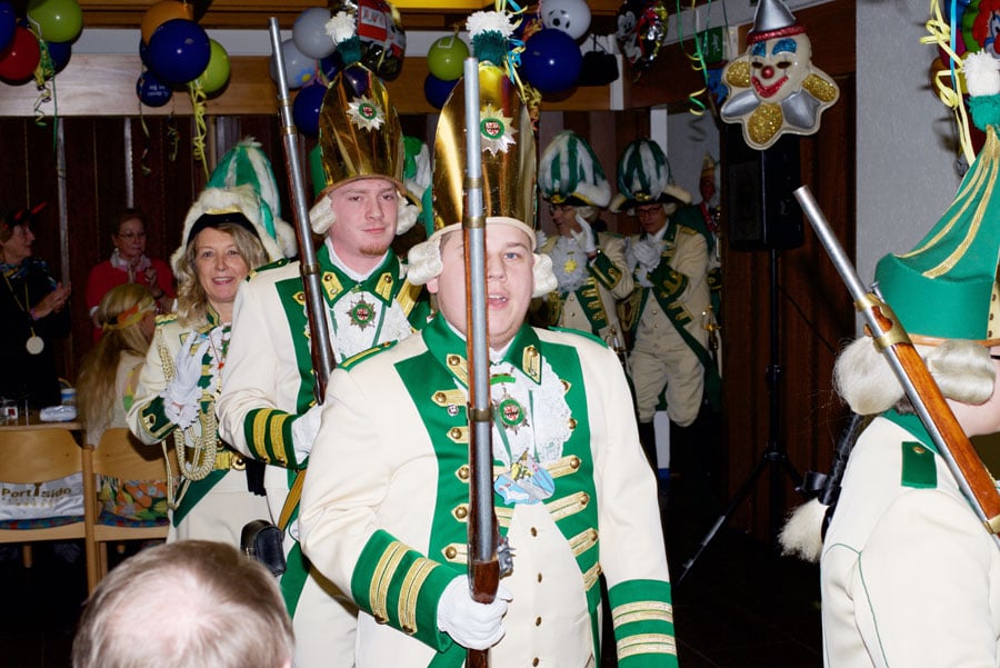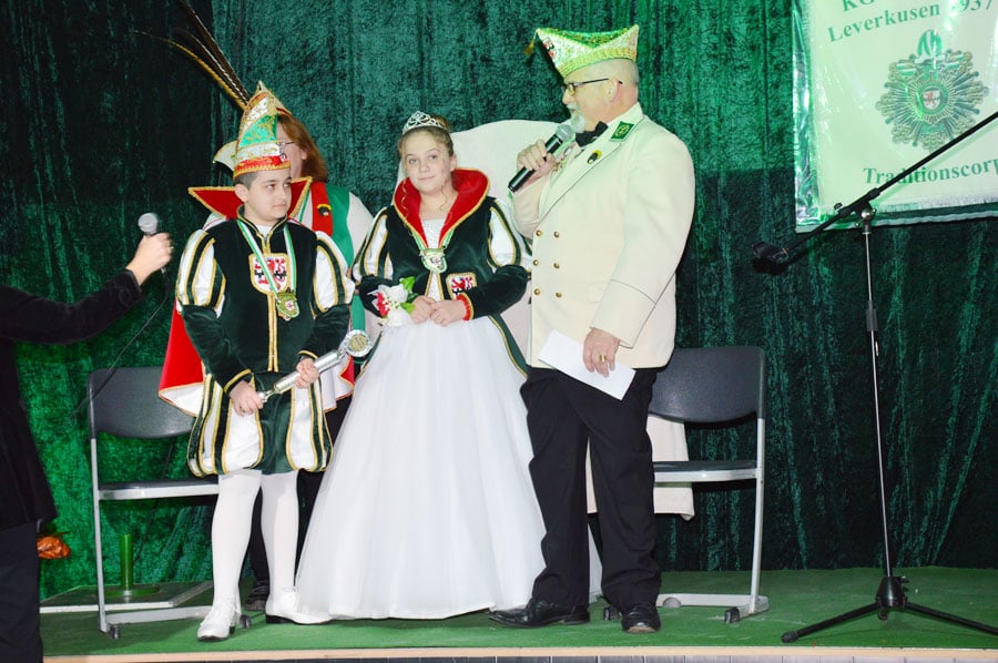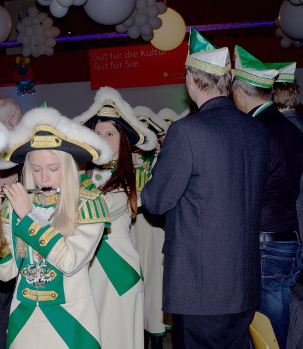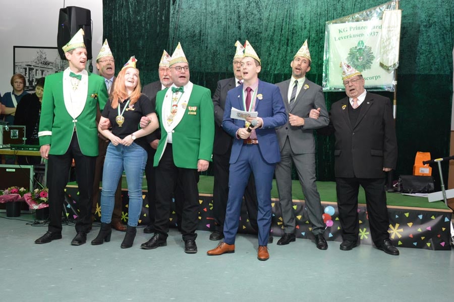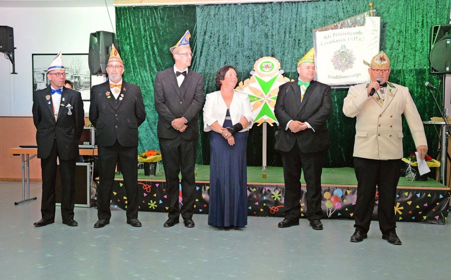 Buntes karnevalistisches Programm zum Start in die Session der Prinzengarde. Beförderungen der Wache, Fahneneid neuer Mitglieder, Präsentation des Leverkusener Prinzen und seiner Crew – all das erwartet die geladenen Gäste von befreundeten Karnevalsgesellschaften. Gut das es die Freunde der KG Grün-Weiß-Schlebusch gibt, die an dem Abend Catering und Service übernehmen.
