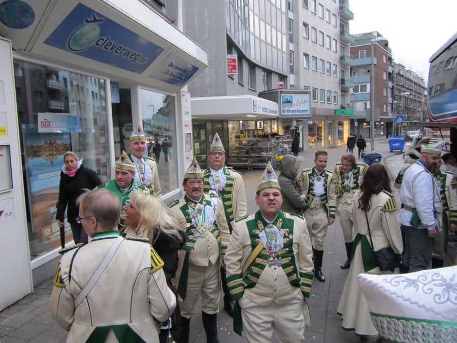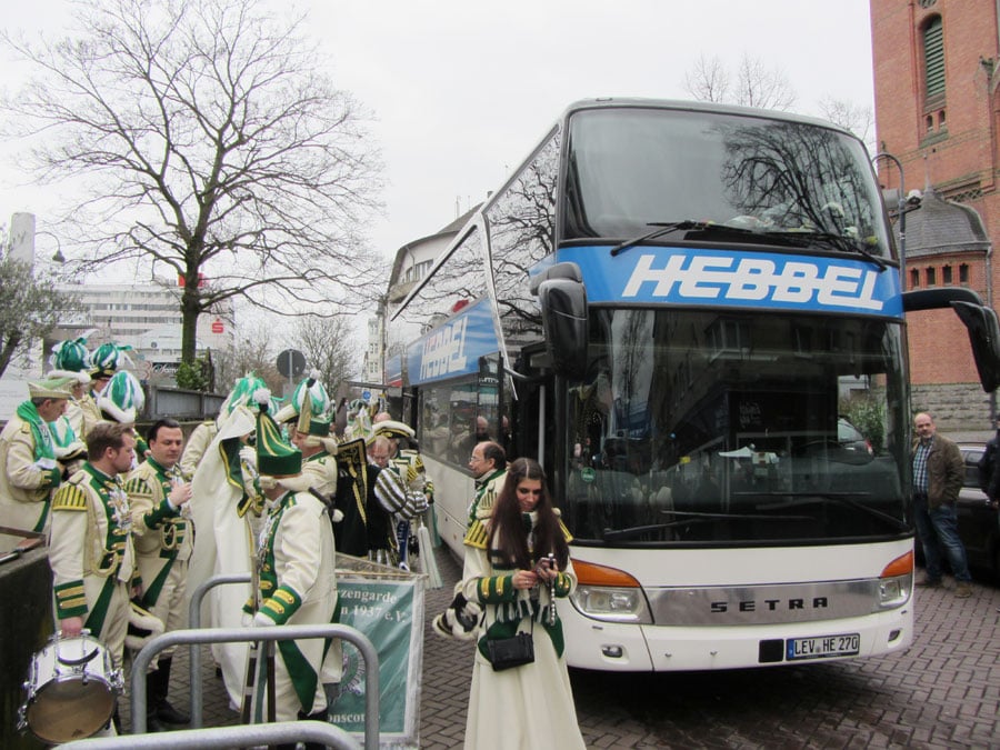 Mit dem Prinzen einen langen Tag durch Leverkusen ziehen. An diesem Tag ist den Marketenderinnen der Prinzengarde gestattet den Kopfschmuck etwas anzupassen. Man verzichtet dann auf den Dreispitz und bemalt sich oder trägt Perücke. Die Reise beginnt schon früh morgens, mit einem doppelstöckigen Bus, in den der Bayer-Spielmannszug, Prinzengarde und Prinzencrew passt.