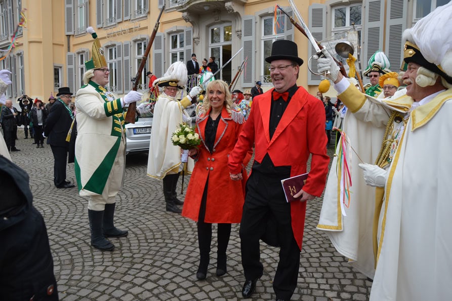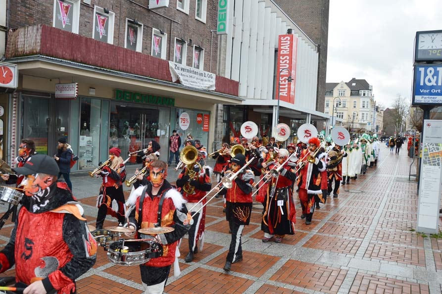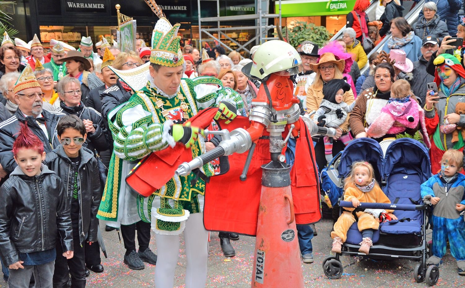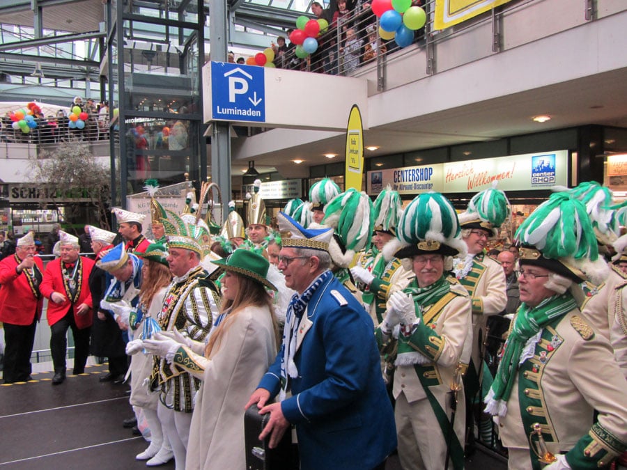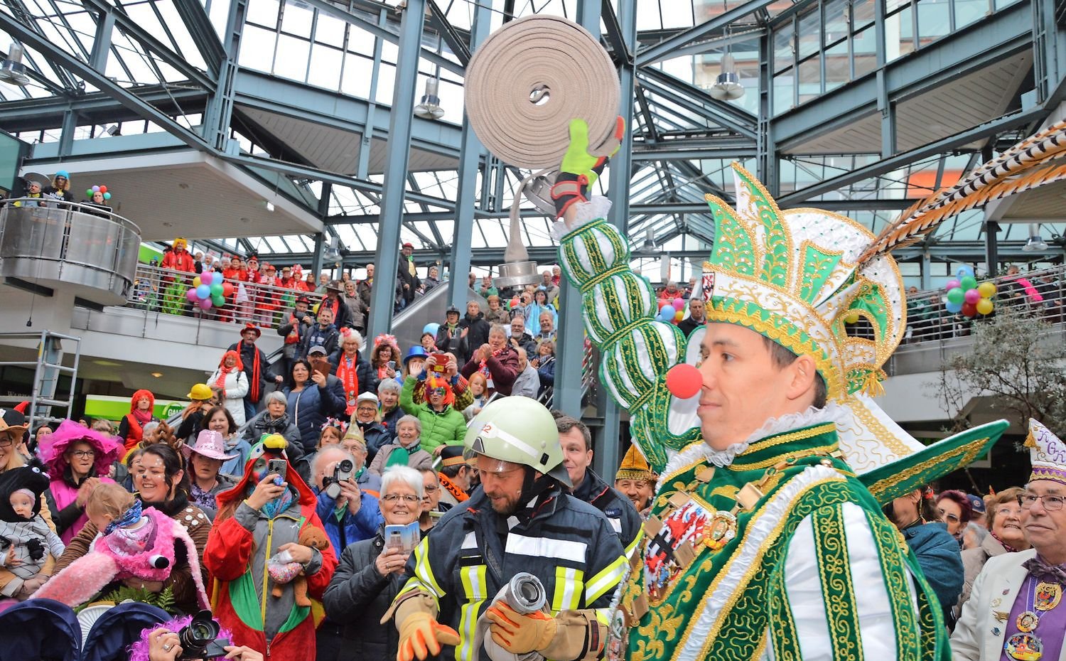 Zum Rathaussturm in Leverkusen treffen sich die Karnevalisten in den Luminaden, einem Einkaufcenter in Wiesdorf. Angeführt vom Bayer-Spielmannszug und Abordnungen Leverkusener Karnevalsgesellschaften wurde Prinz Kerbi. I. von beiden Prinzengarden in die „Manege“ geführt. Mit Oberbürgermeister Uwe Richrath gab es dann eine paar Spielchen rund um Feuerwehr Accessoires.