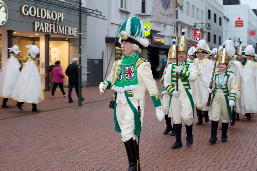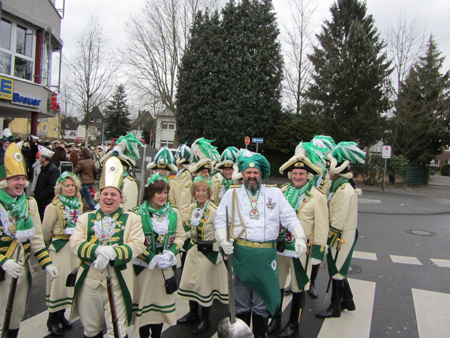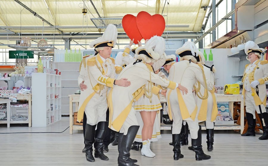 Wenn Blümchen aus dem Gartencenter Selbach erzählen könnten, würde sich das ungefähr so anhören. "Da kamen uniformierte Gardisten mit Knabüs und Zabel und marschierten zu Larida an uns vorbei." Und genau so passiert das schon ein paar Jahre, denn hier findet ein karnevalistischer Frühschoppen statt, der von der Prinzengarde Leverkusen organisiert wird. Viele Tanzgruppen präsentieren ihr Können und der Prinz kommt auch immer mit seinem großen Gefolge vorbei.