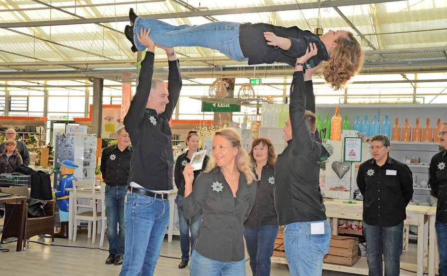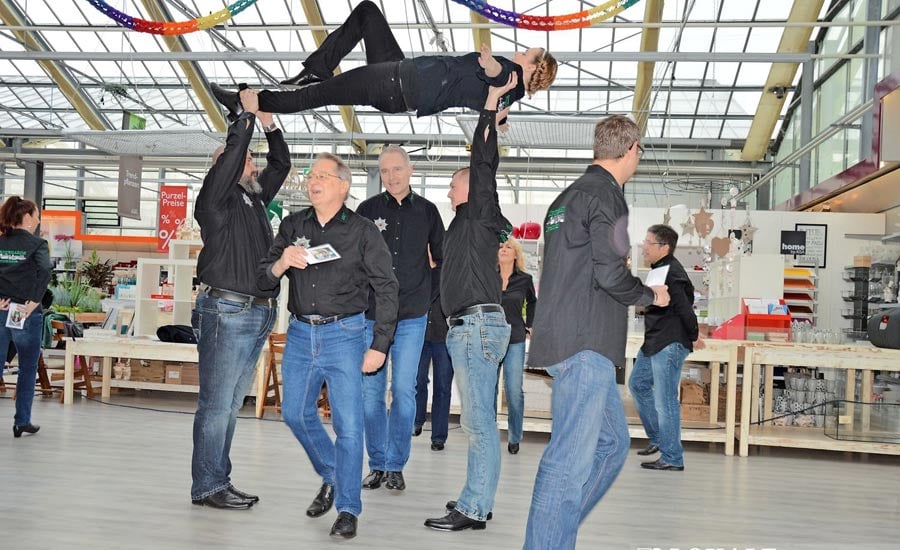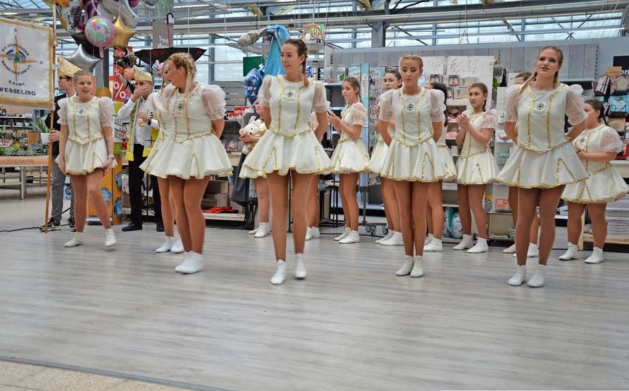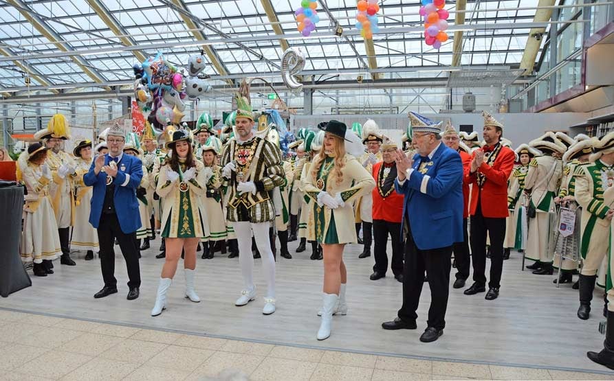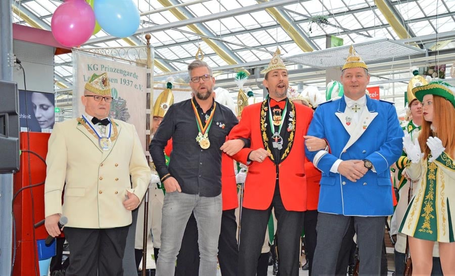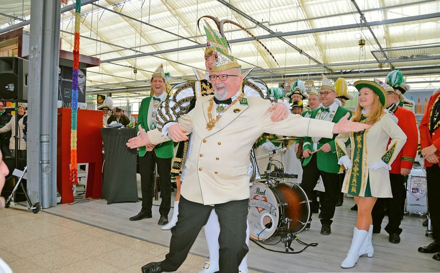 Der Frühschoppen im Gartencenter ist schon eine ganz besondere karnevalistische Veranstaltung. Die Prinzengarde organisierte im 9. Jahr das Programm und konnte wieder zahlreiche Tanzgruppen präsentieren. Gartencenter-Chef Thorsten Dylka, der auch Ehrensenator bei der Prinzengarde ist, freut sich in jedem Jahr auf den musikalischen Vormittag zwischen den Blümchen.